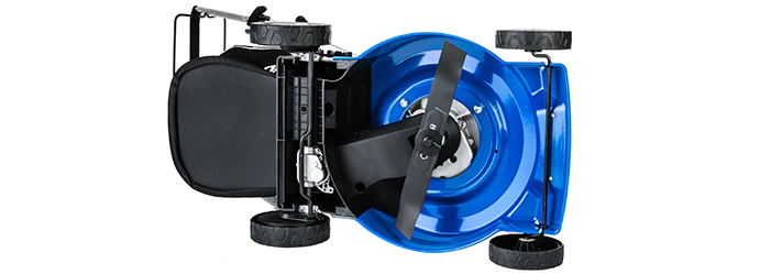Двухлопастной нож с загнутыми краями лезвий способствует аккуратному и чистому скашиванию за счет создания восходящего воздушного потока.