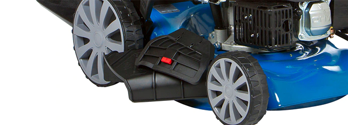 Регулировать высоту скашивания можно от 25 до 75 мм, для чего предусмотрен центральный рычаг, поднимающий и опускающий сразу все колеса.
