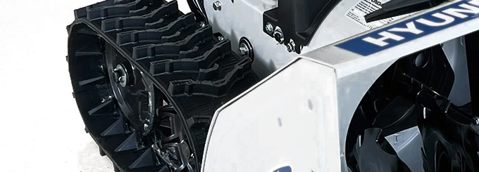 Hyundai HS 7680E оснащен специализированным зимним двигателем ICW Snow Engine мощностью 14 л.с., который обеспечивает высокий крутящий момент для вращения шнеков и движения гусениц. Ключевое отличие от колесных моделей – гусеничный привод X-Trac. Он обеспечивает максимальное сцепление с поверхностью, исключая пробуксовку на льду, склонах и в глубоком рыхлом снегу, а также оказывает минимальное давление на грунт или дорожное покрытие.
