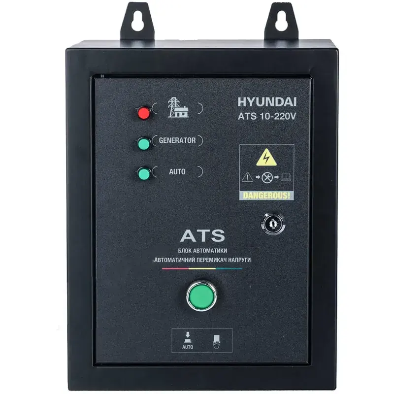 Щит АВР Hyundai ATS 10-220V имеет компактный размер и легкий вес. Он легко монтируется на стену или на генератор. Блок имеет световые индикаторы, которые показывают состояние работы генератора и сети.