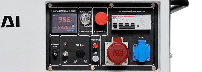 Закрытый корпус защищает от попадания пыли и влаги на внутренние элементы, а также эффективно поглощает шум и вибрацию. На цифровом информационном дисплее отображаются параметры, необходимые для контролирования работы дизель-генератора, такие как напряжение, частота, моточасы, сила тока. Благодаря автоматической системе регулировки мини-электростанция Hyundai DHY 8000SE обеспечивает стабильное напряжение на выходе.