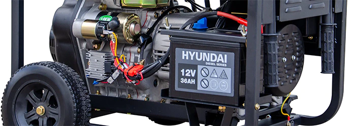 • Транспортировочные колеса облегчают перемещение дизель-генератора Hyundai DHY 8500LE-3.
