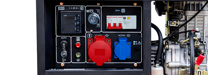 Двигатель легко запускается поворотом ключа в замке зажигания благодаря наличию электростартера. Если у АКБ закончится заряд, то дизель-генератор можно завести при помощи ручного стартера. Кнопка предварительного прогрева облегчает запуск мотора в холодное время. Топливный бак емкостью 14 л оснащен указателем уровня топлива.