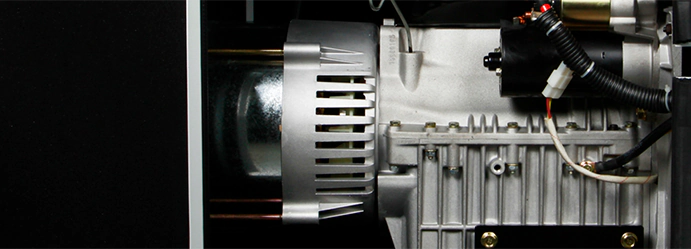 Синхронный альтернатор с двойной медной обмоткой устойчив к большим нагрузкам, эффективно отдает ток и не перегревается при работе. Избежать скачков напряжения помогает встроенный регулятор. Для контроля за уровнем масла предусмотрен специальный датчик. Следить за рабочими показателями помогает цифровой дисплей.