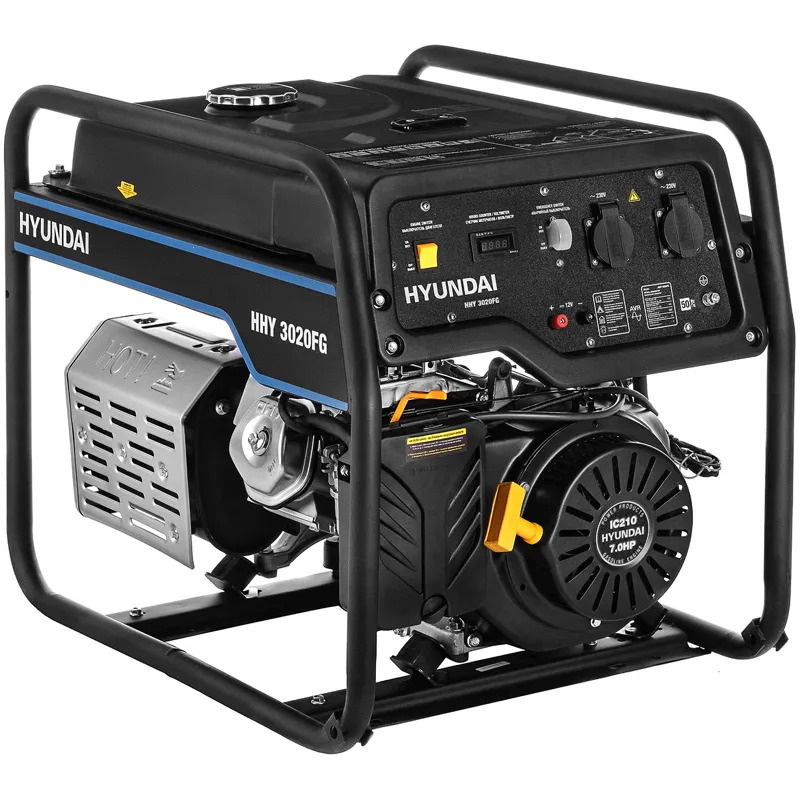 Генератор Hyundai HHY 3020FG, работающий на бензине АИ-92 или сжиженном газе, пригодится владельцам дач, частных домов в качестве резервного автономного источника питания в случае сбоев в электроснабжении. Портативную электростанцию удобно перевозить на место проведения строительных или монтажных работ.