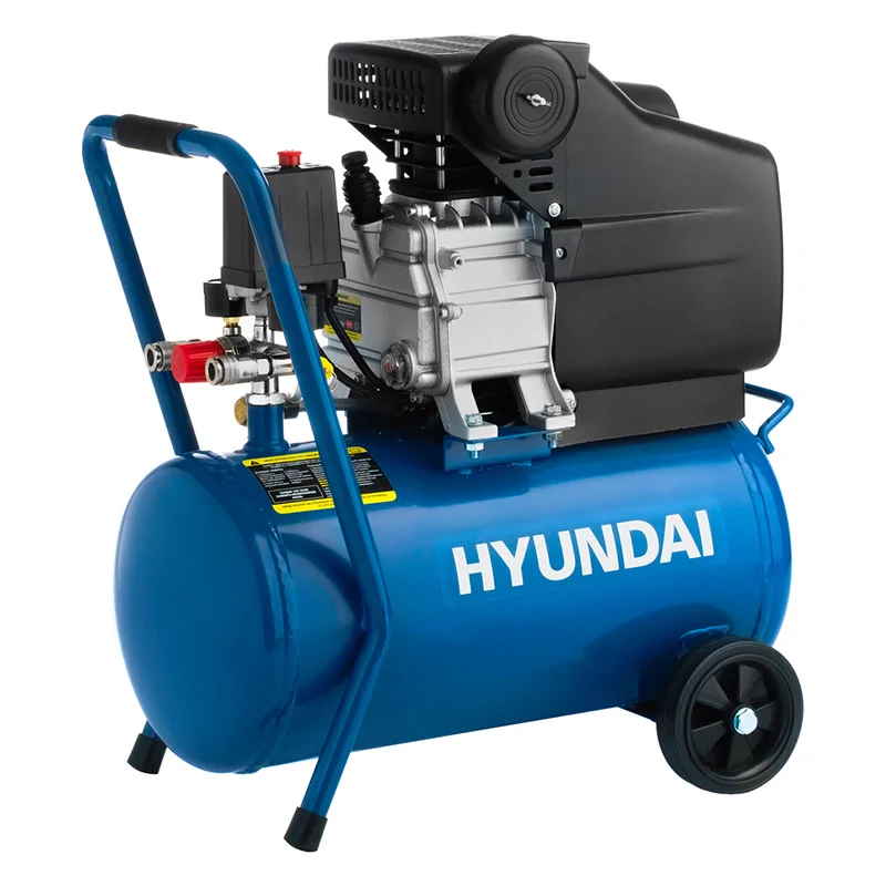 Hyundai HYC 2324 имеет компактные габариты и весит всего 21 кг, его легко перемещать по площадке и транспортировать. Для удобства перемещения предусмотрены колеса и широкая рукоять. Производительность модели равна 230 л/мин. – подойдет для гайковертов, продувочного пистолета, накачки шин и другого пневмооборудования малой мощности.