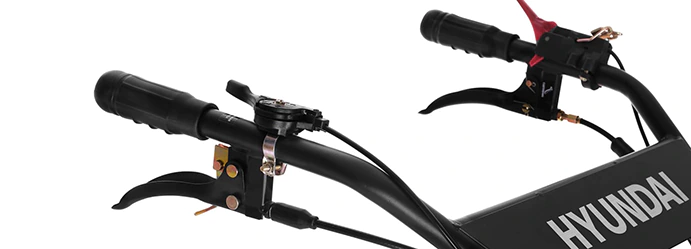 Hyundai T 1300 оснащен механической трансмиссией, которая обеспечивает две скорости движения вперед, а также задний ход. Скорости переключаются отдельным рычагом, который расположен возле рукояти управления. Перед включением передачи вам потребуется зажать сцепление. Реверс запускается отдельной ручкой. Позволяет маневрировать в узких местах, а также бережно извлекать фрезы из земли.